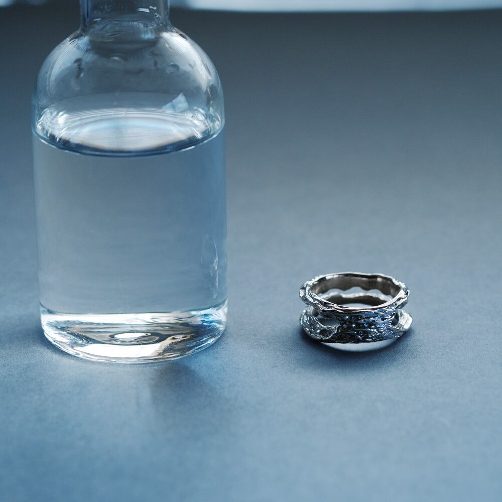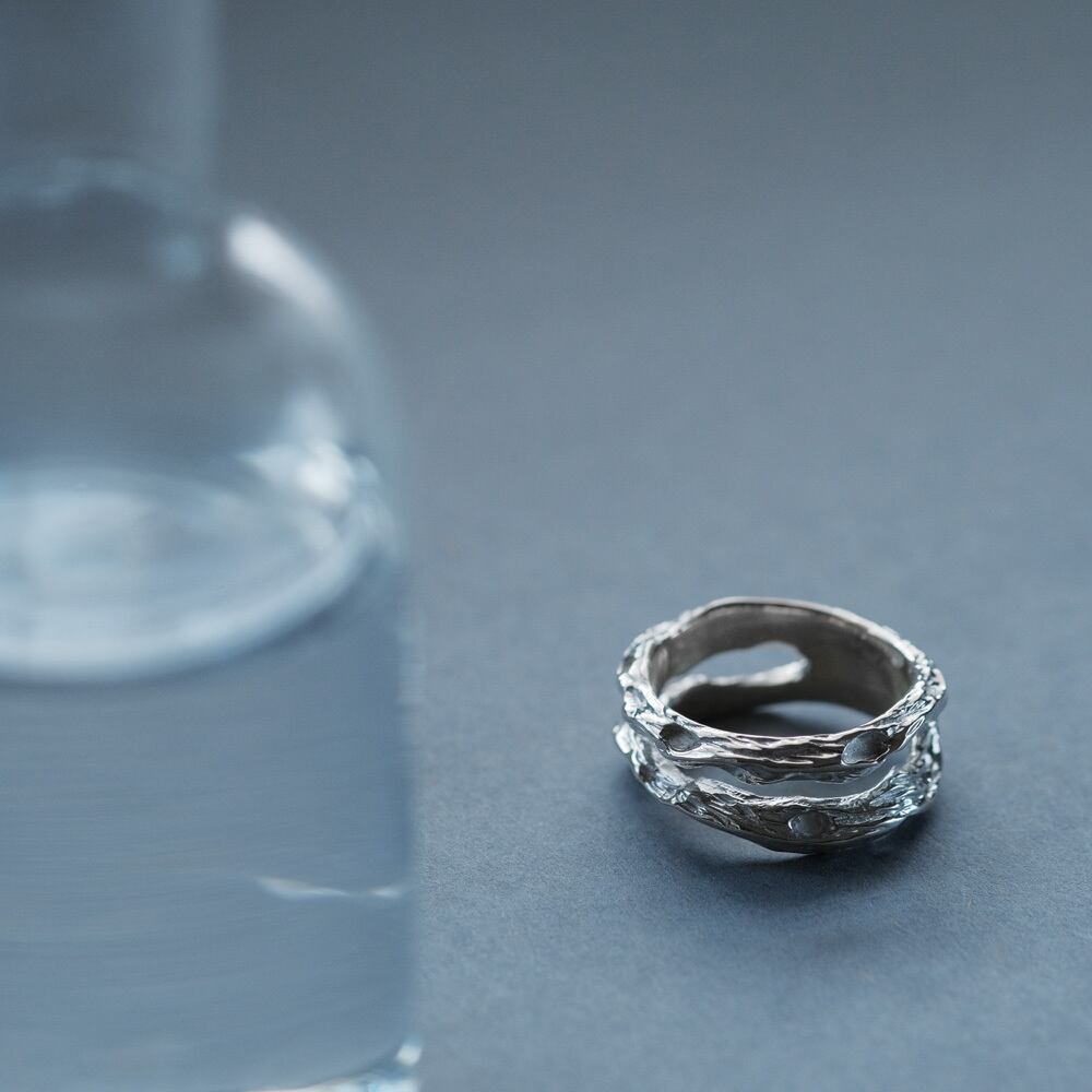 流木テクスチャーの2連リング。