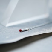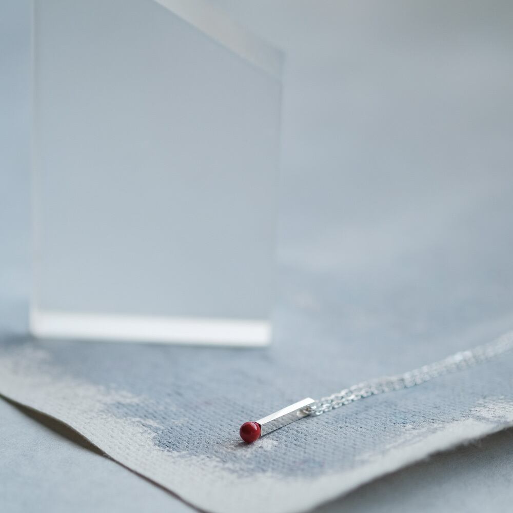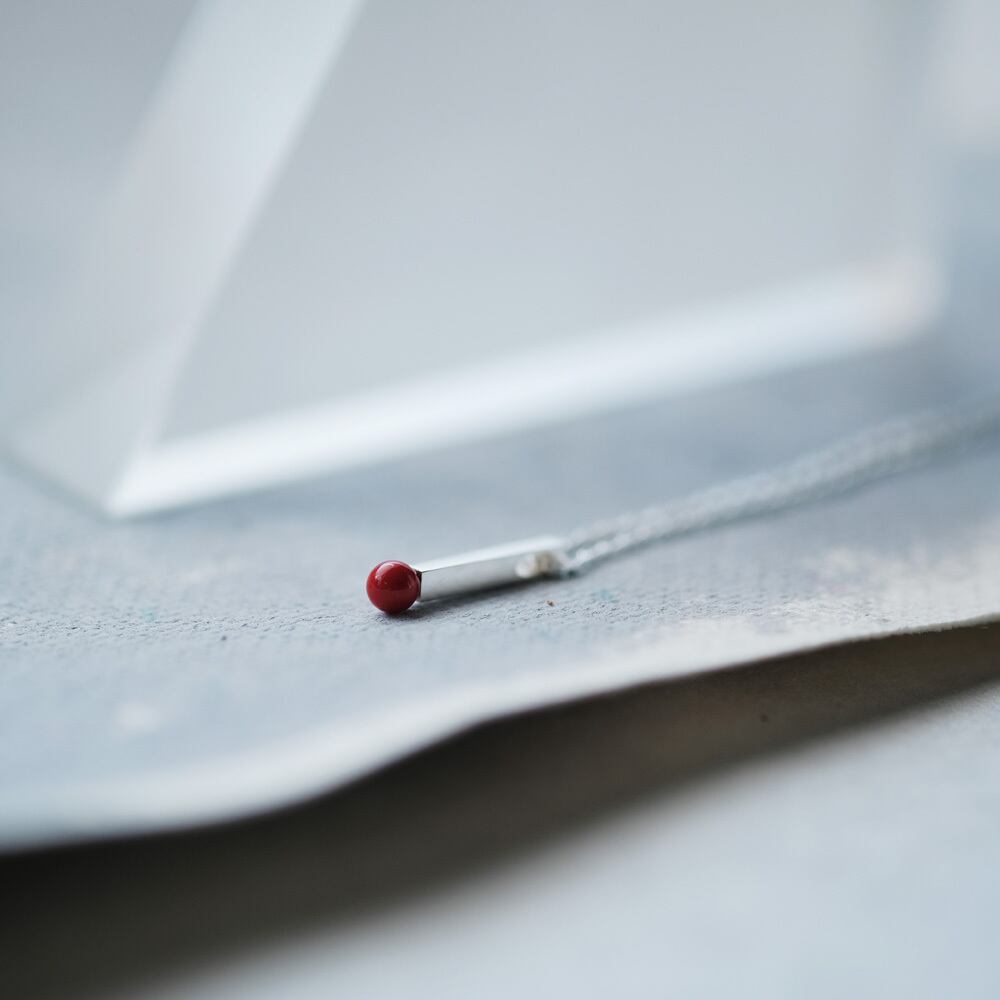 シンプルなスティックモチーフの先端に赤珊瑚を添え、