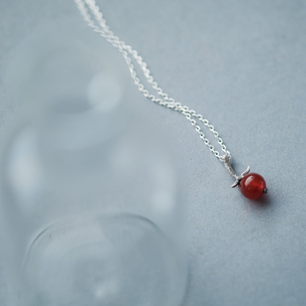 実の部分には温かみのある色味のカーネリアンを使用しております。