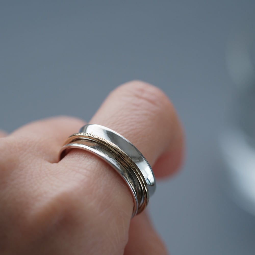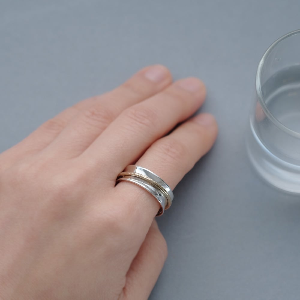 2つのリングを重ねたデザインのリング。