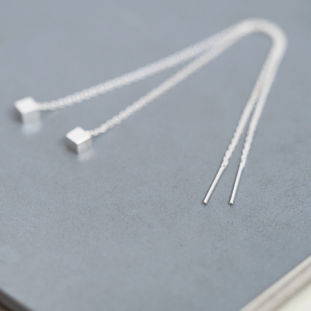 小さな四角のチェーンピアス。